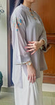 Draped in elegance this flowy ensemble comes with a dull lilac shade cut off from the softest georgette fabric. It consists of a flowy top with embroidery on the neckline giving it a taste of luxury. Paired with flowy culottes, this makes a perfect wear to be carried on lunches, day outs or just a get together.
