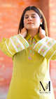 A pink cotton kurta featuring delicate side embroidery, paired with a cream cotton shalwar adorned with embroidered hem for a trendy and elegant look.